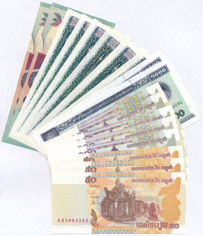 18db-os vegyes külföldi bankjegy tétel, közte Kambodzsa, Laosz, Indonézia T:I,I-,II