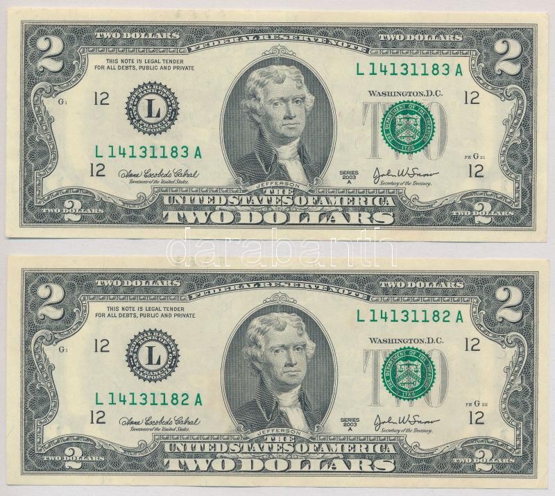 Amerikai Egyesült Államok 2004-2006. 2$ "Anna Escobedo Cabral - John William Snow" (2x) sorszámkövetők T:I,I-