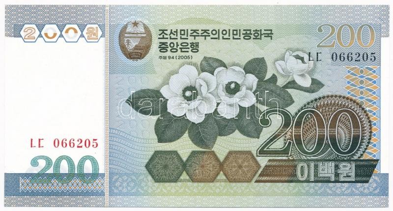 North Korea 2005. 200 Won C:UNC https://www.darabanth.com/de/329-Fernauktion/329.0/Numismatik/Weltweit-Banknoten~2500012/Eszak-Korea-2005-200W-TI--North-Korea-2005-200-Won-CUNC~II1821848