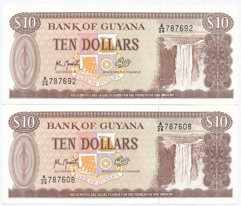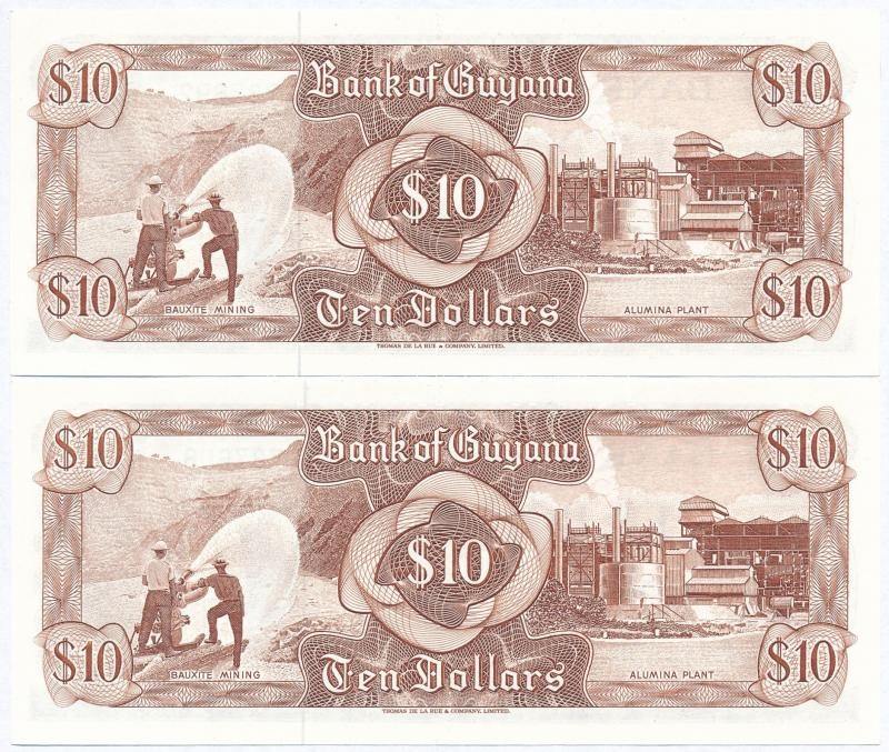 Guyana 1992. 10 Dollars (2x) + 1996. 20 Dollars (4x) C:UNC