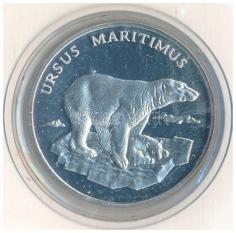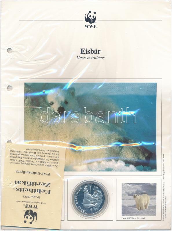 1986. "30 éves a WWF / Jegesmedve" jelzett Ag emlékérem német nyelvű tanúsítvánnyal és tájékoztató lappal (20g/0.999/38mm) T:PP