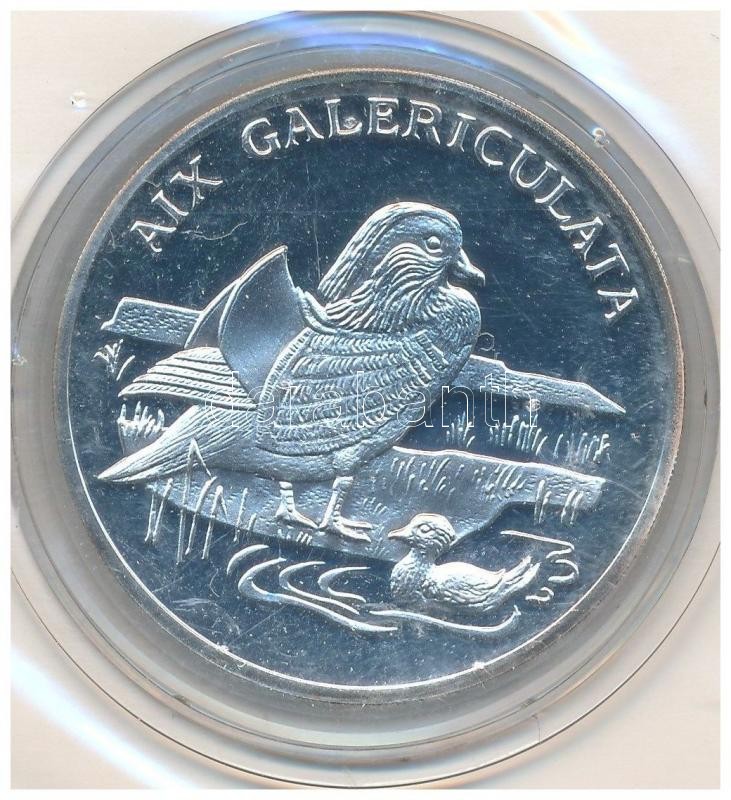 1986. "30 éves a WWF / Mandarin réce" jelzett Ag emlékérem német nyelvű tanúsítvánnyal és tájékoztató lappal (20g/0.999/38mm) T:PP