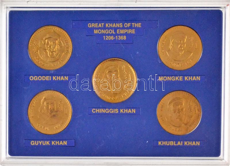 Mongolia 2006. "Great Khans of the Mongol Empire 1206-1368" brass commemorative coins in original case (5xdiff) C:UNC