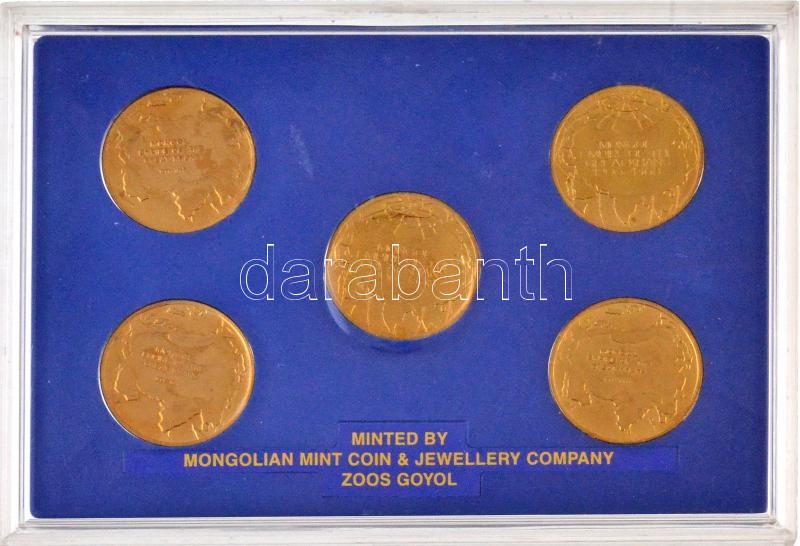 Mongólia 2006. "A Mongol Birodalom nagy kánjai 1206-1368" sárgaréz emlékérem sorozat eredeti tokban (5xklf) T:1