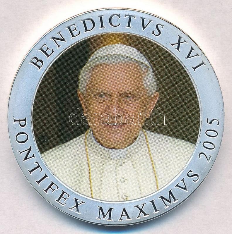 Vatikán 2005. "XVI. Benedek pápa" ezüstözött multicolor emlékérem (40mm) T:PP Vatican 2005. "Pope Benedictvs XVI" silver-plated multicolour medallion (40mm) C:PP