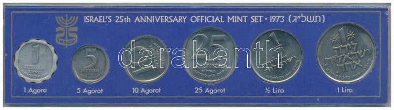 Israel 1973. 1 Agora - 1 Lira (6xdiff) "Israel's 25th Anniversary" coin set in case C:UNC,AU
