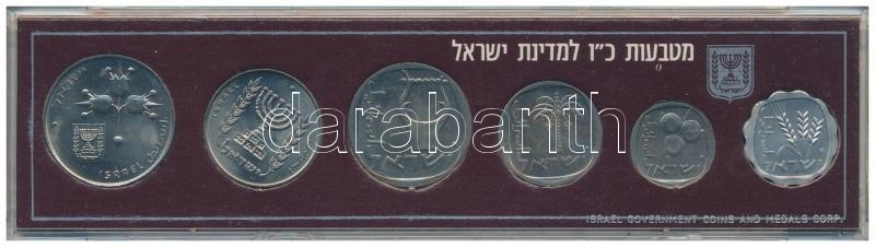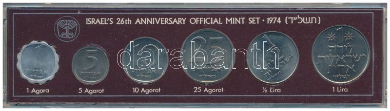 Izrael 1974. 1a-1L (6xklf) "Izrael 26. évfordulója" forgalmi sor tokban T:1,1- Israel 1974. 1 Agora - 1 Lira (6xdiff) "Israel's 26th Anniversary" coin set in case C:UNC,AU