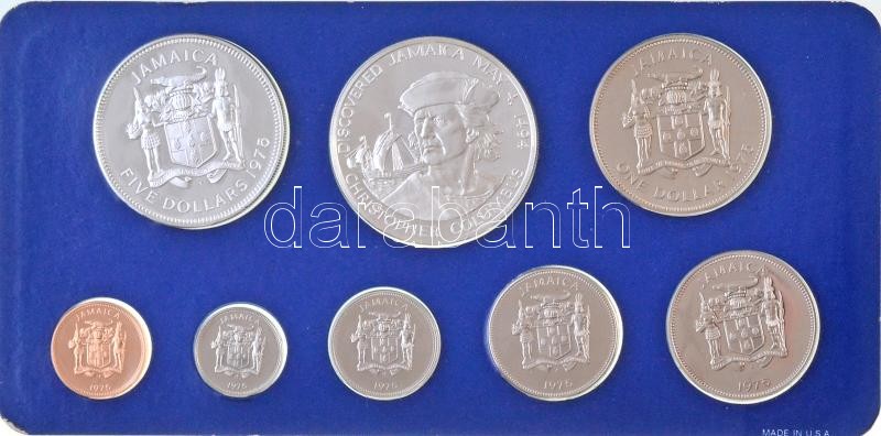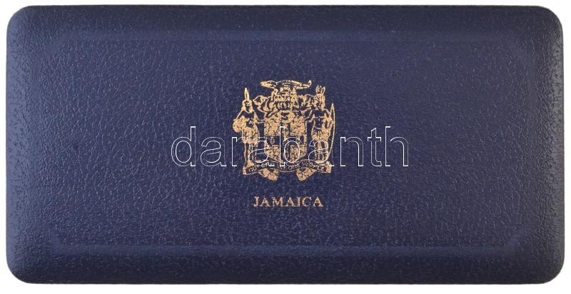Jamaika 1975. 1c-10$ (8xklf) forgalmi sor dísztokban, benne 1975. 5$ Ag "Norman W. Manley", 1975. 10$ Ag "Kolombusz" T:PP Jamaica 1975. 1 Cent - 10 Dollars (8xdiff) coin set in case, including 1975. 5 Dollars Ag "Norman W. Manley", 1975. 10 Dollars Ag "Columbus" C:PP