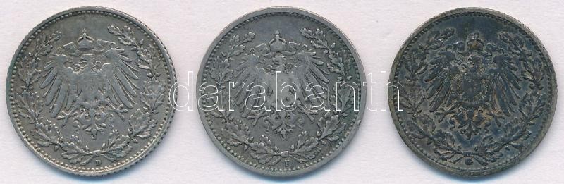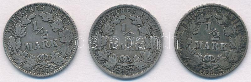 Német Birodalom 1905D 1/2M Ag + 1905F 1/2M Ag + 1906G 1/2M Ag T:2- German Empire 1905D 1/2 Mark Ag + 1905F 1/2 Mark Ag + 1906G 1/2 Mark Ag C:VF