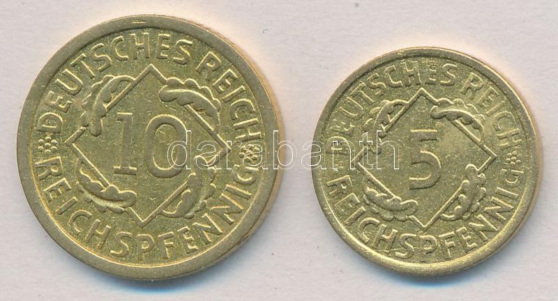 Németország / Weimari Köztársaság 1925A 5pf Al-Br + 10pf Al-Br T:2 Germany / Weimar Republic 1925A 5 Pfennig Al-Br + 10 Pfennig Al-Br C:XF