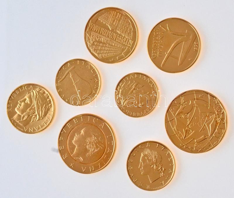 I... https://www.darabanth.com/de/329-Fernauktion/329.0/Numismatik/Weltweit-Munzen~2500013/Olaszorszag-1989-1999-5L-1000L-8xklf-aranyozott-forgalmi-sor-T1-Italy-1989-1999-5-Lire-1000~II1835712