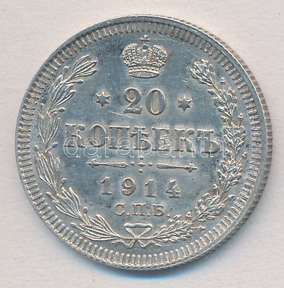 Russian Em... https://www.darabanth.com/de/329-Fernauktion/329.0/Numismatik/Weltweit-Munzen~2500013/Orosz-Birodalom-1914-20k-Ag-II-Miklos-T1-2-Russian-Empire-1914-20-Kopeks-Ag-Nicholas-II-C~II1833208