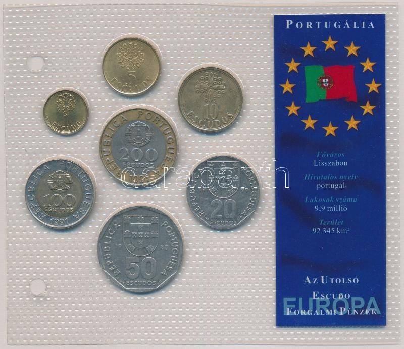 Portugália 1988-2000. 1E-200E (7xklf) "Az utolsó Escudo forgalmi pénzek" forgalmi sor T:1