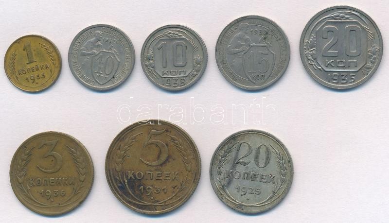 Szovjetunió 1925-1938. 1k-20k (8xklf) közte 1925. 20k Ag T:2,2-