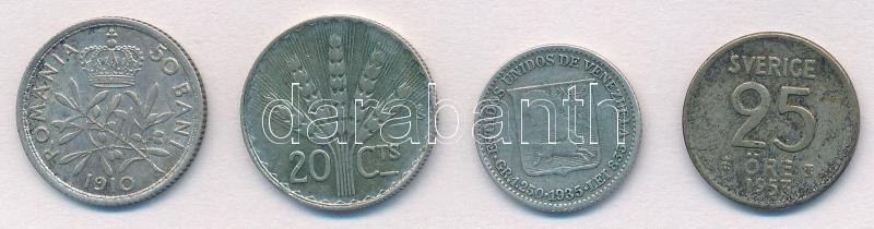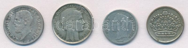 Vegyes 4db-os külföldi ezüstpénz tétel, közte Románia 1910. 50b Ag; Uruguay 1942. 20c Ag T:2,2-