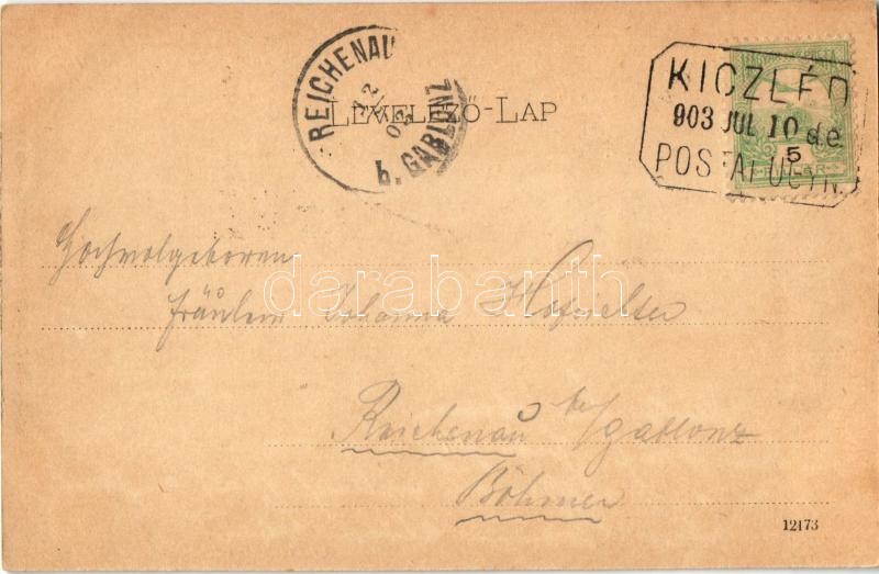 Beschreibung: 1903 Pinkafő, Pinkafeld; Fő tér, takarékpénztár / Hauptplatz, Sparkassa / main square, savings bank + "KICZLÉD POSTAI. ÜGYN."