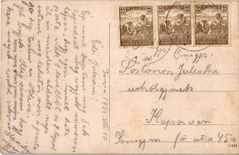 Beschreibung: 1921 Tarcsafürdő, Bad Tatzmannsdorf; utca, kutyák / Strasse mit Hunde. Verlag v. Warenhaus Gustav Löwy & Bruder / street with dogs
