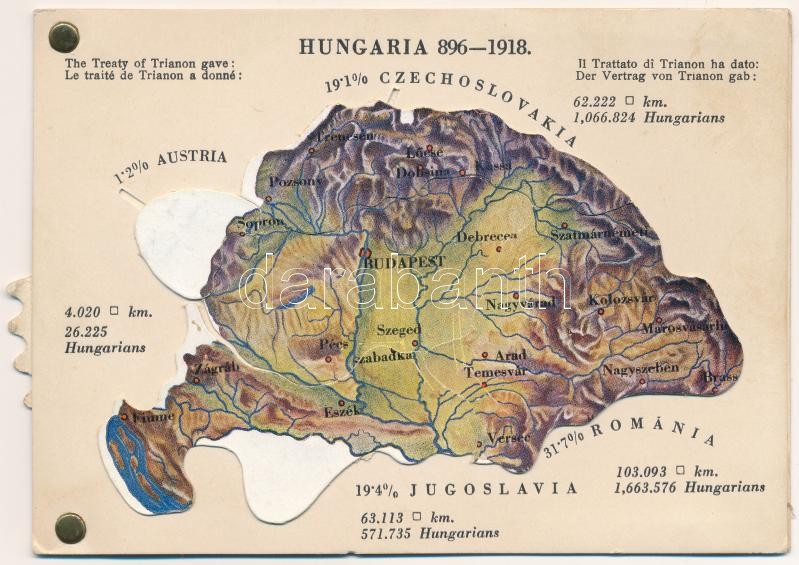 Hungaria 896-1918 - mechanikus térképes irredenta lap / Map of Hungary, Irredenta mechanical postcard. Published by the Hungarian Women's National Association. Fecit: Emich