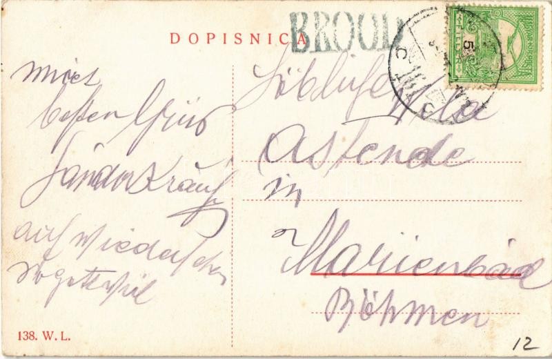 Bród, Nagyrév, Slavonski Brod, Brod an der Save; Vörös ház szálló, tér, C. Bencevic és Milan Petrovacki üzlete. W.L. 138. / Svratiste crvena kuca / Hotel Rotes Haus / hotel, square, shops (EK)