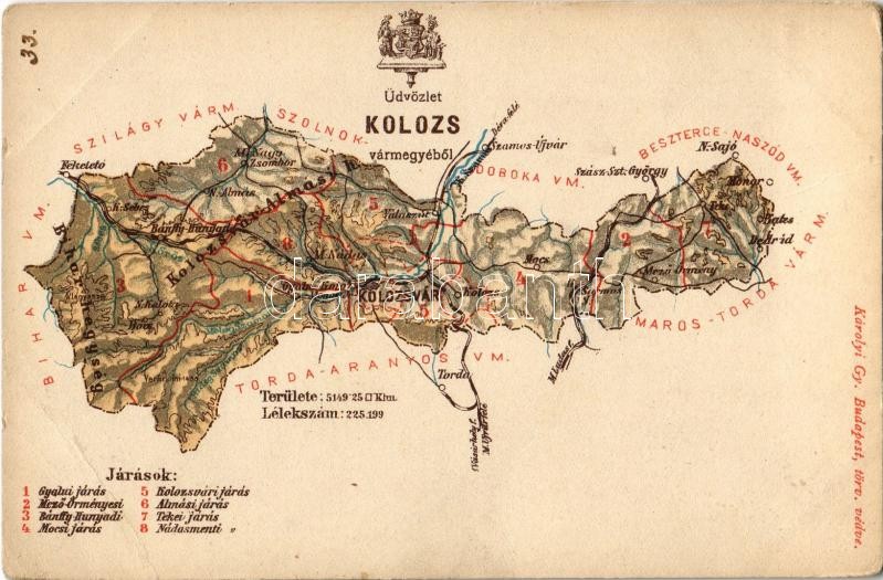 Kolozs vármegye térképe. Kiadja Károlyi Gy. / Map of Cluj county (EB) https://www.darabanth.com/de/33-Gross-Auktion/33.1/Ansichtskarten/Landkarte~14003/Kolozs-varmegye-terkepe-Kiadja-Karolyi-Gy-Map-of-Cluj-county-EB~II2132317