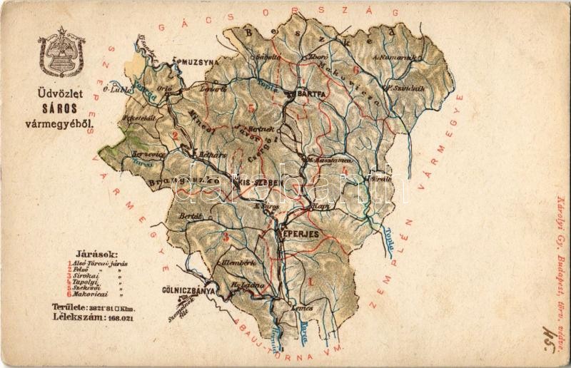 Sáros vármegye térképe. Kiadja Károlyi Gy. / Map of Saris county https://www.darabanth.com/de/33-Gross-Auktion/33.1/Ansichtskarten/Landkarte~14003/Saros-varmegye-terkepe-Kiadja-Karolyi-Gy-Map-of-Saris-county~II2132306