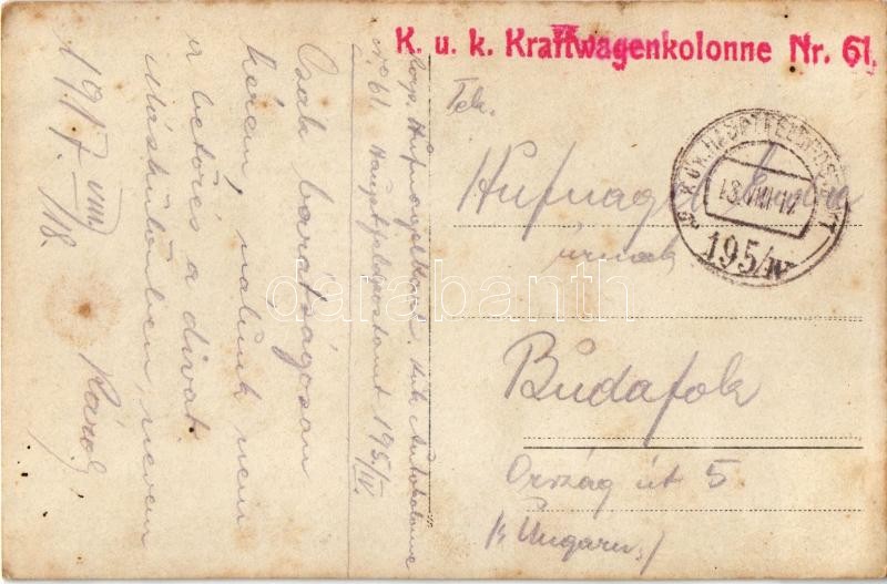 1917 Hufnagel Károly karpaszományos kitüntetésekkel / K.u.K. Kraftwage... https://www.darabanth.com/de/33-Gross-Auktion/33.1/Ansichtskarten/Militaria~13988/1917-Hufnagel-Karoly-karpaszomanyos-kituntetesekkel-KuK-Kraftwagenkolonne-Nr-61-WWI-Aus~II2137845