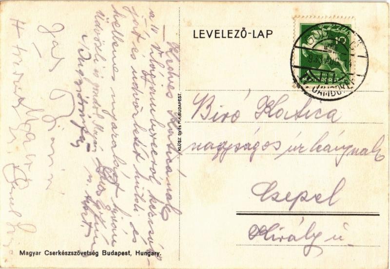Beschreibung: 1933 Budapest-Gödöllő, Cserkész Jamboree. Kiadja a Magyar Cserkészszövetség / Hungarian scout jamboree art postcard. s: Szilasi (EK)