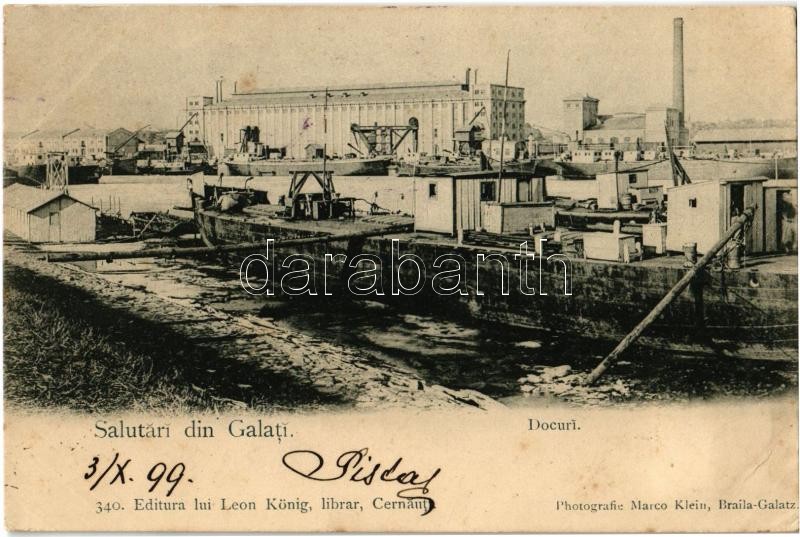 1899 Galati, Docuri / docks at the port, ship (EK) https://www.darabanth.com/de/33-Gross-Auktion/33.1/Ansichtskarten/Rumanien~13959/1899-Galati-Docuri-docks-at-the-port-ship-EK~II2142414