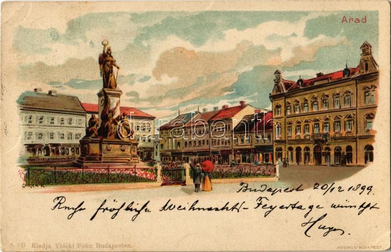 1899 Arad, Szabadság tér, Szabadság szobor az aradi vértanúk emlékére / square, statue, monument for the martyrs of the Hungarian Revolution of 1848. litho (EK)