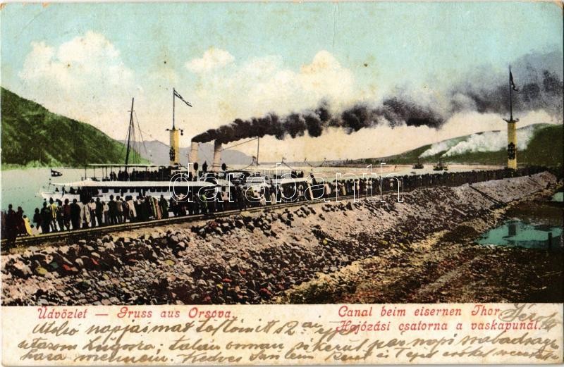 1909 Orsova, Canal beim eisernen Thor / Hajózási csatorna a Vaskapunál... https://www.darabanth.com/de/33-Gross-Auktion/33.1/Ansichtskarten/Siebenburgen~13901/1909-Orsova-Canal-beim-eisernen-Thor-Hajozasi-csatorna-a-Vaskapunal-port-canal-steamship-~II2132377