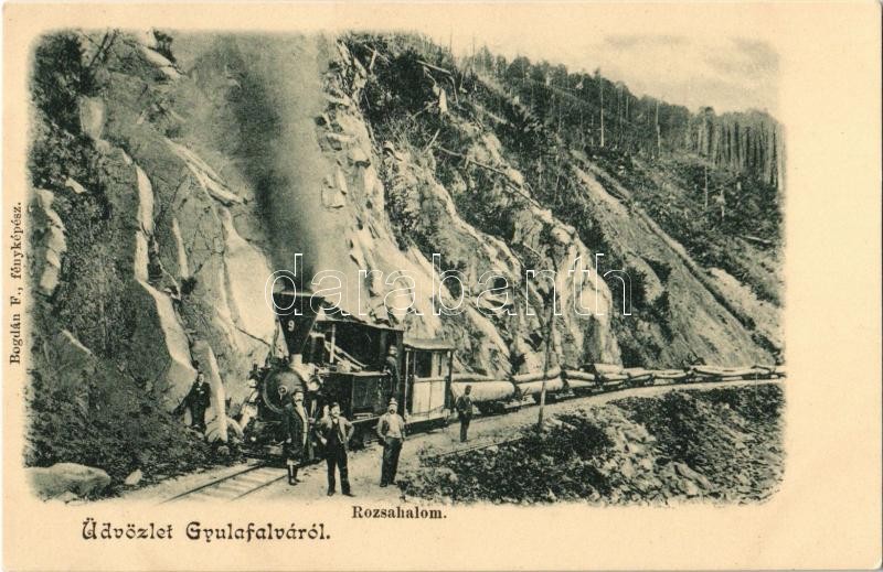 Gyulafalva (Kommandó, Comandau); Rózsahalom, faszállító iparvasút, gőz... https://www.darabanth.com/de/33-Gross-Auktion/33.1/Ansichtskarten/Siebenburgen~13901/Gyulafalva-Kommando-Comandau-Rozsahalom-faszallito-iparvasut-gozmozdony-Bogdan-F-fe~II2125373