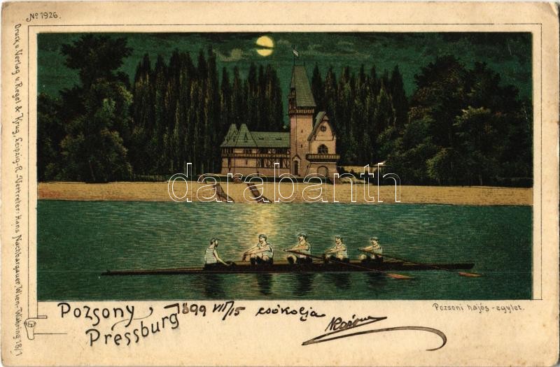 1899 Pozsony, Pressburg, Bratislava; hajós egylet este. Regel & Kr... https://www.darabanth.com/de/33-Gross-Auktion/33.1/Ansichtskarten/Slowakei~13903/1899-Pozsony-Pressburg-Bratislava-hajos-egylet-este-Regel-Krug-No-1926-rowing-club-at-nig~II2124385