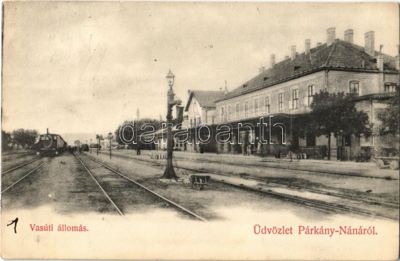 1907 Párkánynána, Párkány-Nána, Stúrovo; vasútállomás, vonat, kút. Özv... https://www.darabanth.com/de/33-Gross-Auktion/33.1/Ansichtskarten/Slowakei~13903/1907-Parkanynana-Parkany-Nana-Sturovo-vasutallomas-vonat-kut-Ozv-Neumann-GezanC3~II2132590