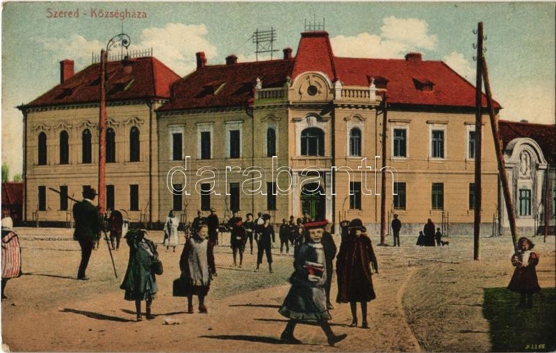 1912 Szered, Sereth, Sered nad Váhom; Községháza. Gross Lipót kiadása ... https://www.darabanth.com/de/33-Gross-Auktion/33.1/Ansichtskarten/Slowakei~13903/1912-Szered-Sereth-Sered-nad-Vahom-Kozseghaza-Gross-Lipot-kiadasa-town-hall-EK~II2141463