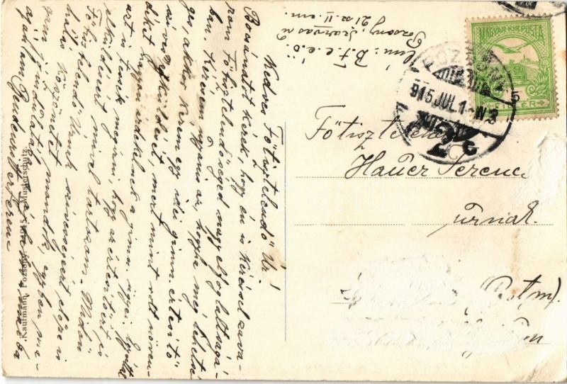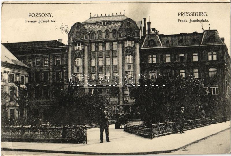 1915 Pozsony, Pressburg, Bratislava; Ferenc József tér, Magyar leszámítoló és Pénzváltó Bank. Kaufmann kiadása / Franz Josefsplatz / square, exchange bank (Rb)