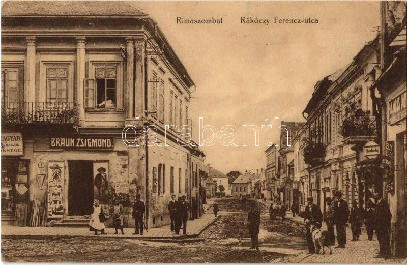 1917 Rimaszombat, Rimavská Sobota; Rákóczi Ferenc utca, kávéház, borbé... https://www.darabanth.com/de/33-Gross-Auktion/33.1/Ansichtskarten/Slowakei~13903/1917-Rimaszombat-Rimavska-Sobota-Rakoczi-Ferenc-utca-kavehaz-borbely-Braun-Zsigmond-uzl~II2141446
