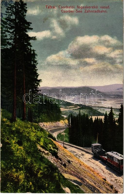 1917 Tátra, Vysoké Tatry; Csorba tói fogaskerekű vasút. Kiadja Cattarino S. utóda Földes Samu 194. sz. / Csorber-See Zahnradbahn / funicular railway by Strbské pleso