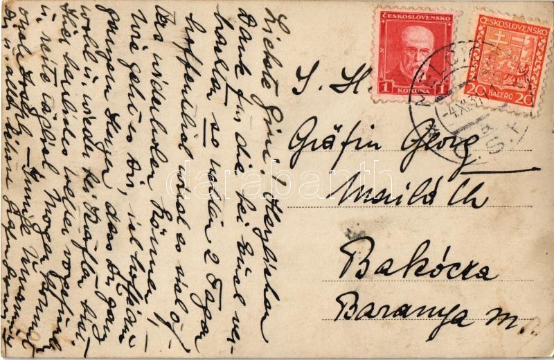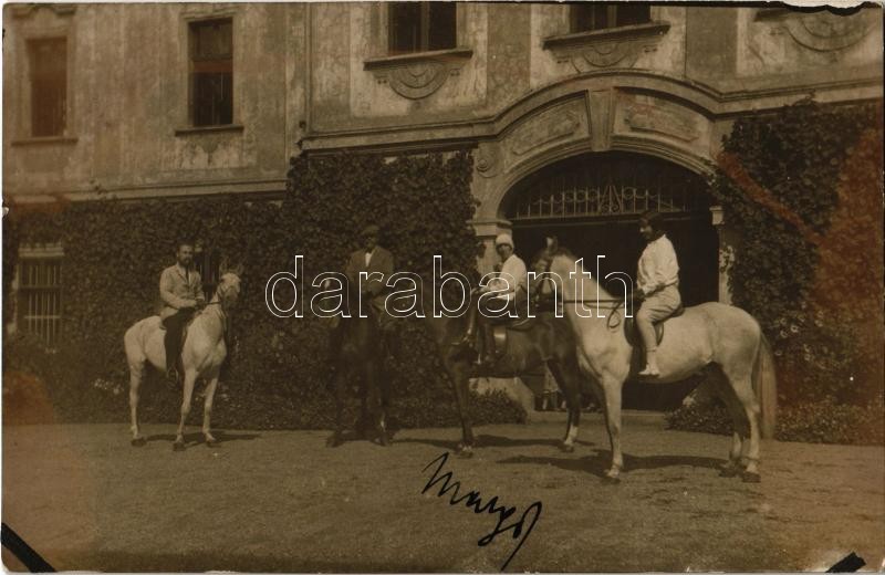 1931 Nemesmogyoród, Zemianske Lieskové (Melcsicmogyoród, Melcice-Lieskové); Zsámbokréty-kastély Kiszsámbokréten, lovasok / horse riders in front of the castle. photo (EK)