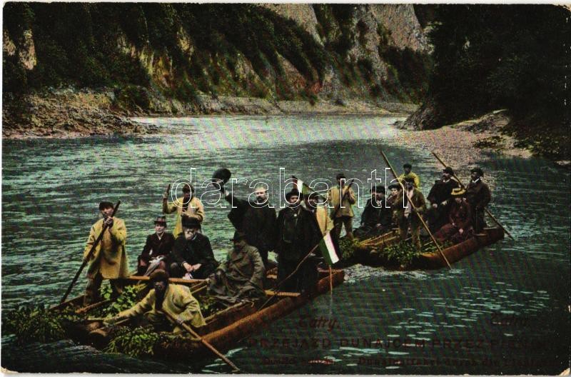 Tátra, Vysoké Tatry; Dunajeci hajózás magyar zászlókkal, tutaj / Dunajecfahrt durch die Pieninen. Feitzinger Ede No. 355. / rafting with Hungarian flags