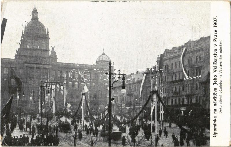 1907 Praha, Prag, Praze; Upomínka na návstévu Jeho Velicenstva, Dekorativní vyzdoba na Václavském námestí / Remembrance of His Majesty Franz Joseph Visit, Decorative Decoration on Wenceslas Square (EK)