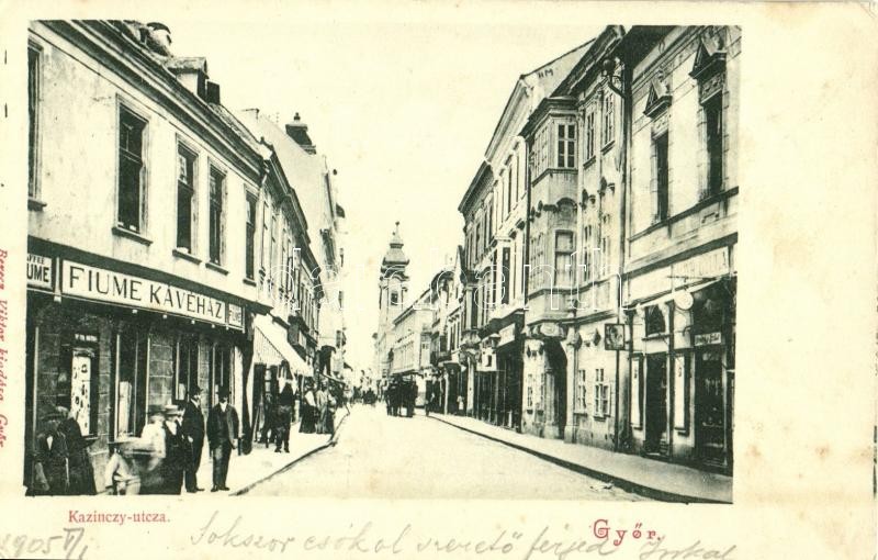 1905 Győr, Kazinczy utca, Fiume Kávéház, Máyr Gyula üzlete. Berecz Vik... https://www.darabanth.com/de/33-Gross-Auktion/33.1/Ansichtskarten/Ungarn~13900/1905-Gyor-Kazinczy-utca-Fiume-Kavehaz-Mayr-Gyula-uzlete-Berecz-Viktor-uzlete-EK~II2059693