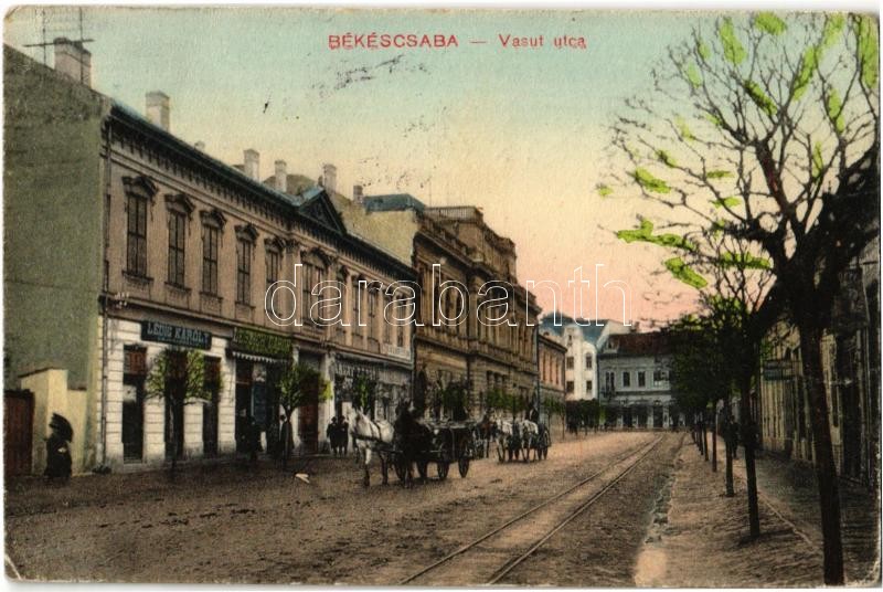 1910 Békéscsaba, Vasút utca, Lédig Károly, Leszich Kálmán és Árvay Rez... https://www.darabanth.com/de/33-Gross-Auktion/33.1/Ansichtskarten/Ungarn~13900/1910-Bekescsaba-Vasut-utca-Ledig-Karoly-Leszich-Kalman-es-Arvay-Rezso-uzlete-EK~II2134096