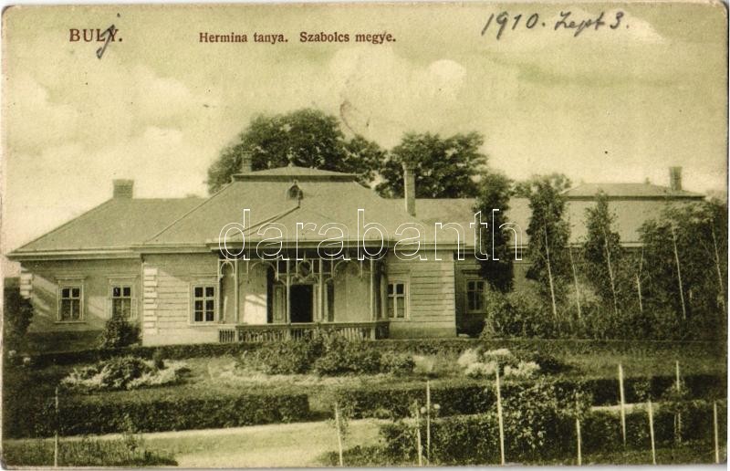 1910 Buj, Buly; Hermina tanya Szabolcs megyében, kastély. Hunyady fény... https://www.darabanth.com/de/33-Gross-Auktion/33.1/Ansichtskarten/Ungarn~13900/1910-Buj-Buly-Hermina-tanya-Szabolcs-megyeben-kastely-Hunyady-fenykepesz-kiadasa-EK~II2133559