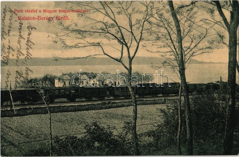 1912 Balatonberény, Parti részlet a Magyar tenger-szállóval, elrobogó ... https://www.darabanth.com/de/33-Gross-Auktion/33.1/Ansichtskarten/Ungarn~13900/1912-Balatonbereny-Parti-reszlet-a-Magyar-tenger-szalloval-elrobogo-vonat-Muller-Vilmos-kia~II2132518