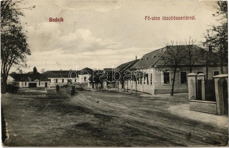 1912 Bodajk, Fő utca, tűzoltószertár. Robitsek Sándor kiadása 271. https://www.darabanth.com/de/33-Gross-Auktion/33.1/Ansichtskarten/Ungarn~13900/1912-Bodajk-Fo-utca-tuzoltoszertar-Robitsek-Sandor-kiadasa-271~II2134105