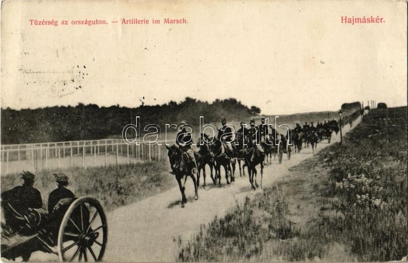 1913 Hajmáskér, Tüzérség az országúton https://www.darabanth.com/de/33-Gross-Auktion/33.1/Ansichtskarten/Ungarn~13900/1913-Hajmasker-Tuzerseg-az-orszaguton~II2142360