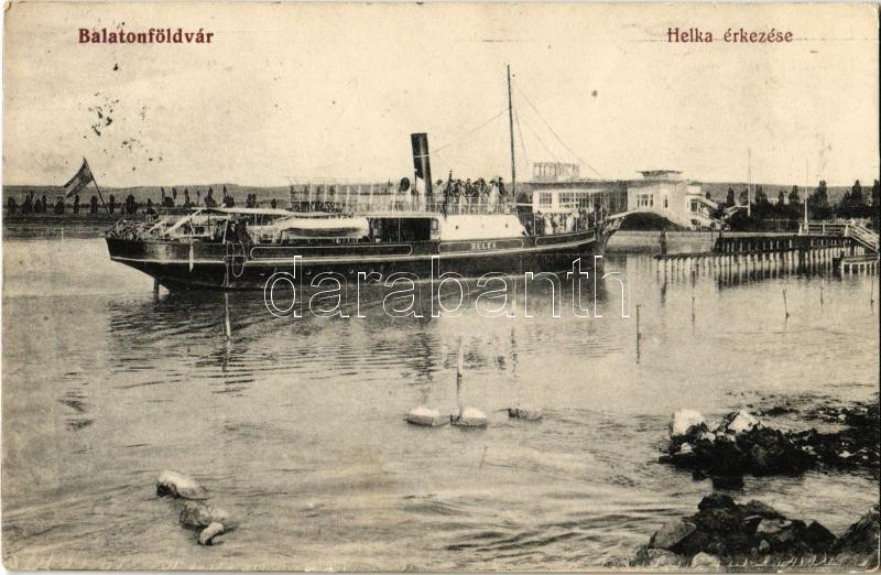 1917 Balatonföldvár, Helka gőzös érkezése. Gerendás Gyula 28. https://www.darabanth.com/de/33-Gross-Auktion/33.1/Ansichtskarten/Ungarn~13900/1917-Balatonfoldvar-Helka-gozos-erkezese-Gerendas-Gyula-28~II2132052