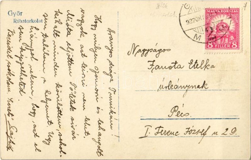 1927 Győr, Rába torkolat, emlékmű, víztorony, templom https://www.darabanth.com/de/33-Gross-Auktion/33.1/Ansichtskarten/Ungarn~13900/1927-Gyor-Raba-torkolat-emlekmu-viztorony-templom~II2059721