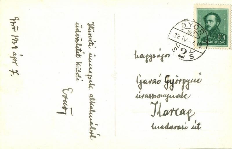 1939 Győr, látkép a Rába part mellől vasúti sínekkel, templomok https://www.darabanth.com/de/33-Gross-Auktion/33.1/Ansichtskarten/Ungarn~13900/1939-Gyor-latkep-a-Raba-part-mellol-vasuti-sinekkel-templomok~II2069486