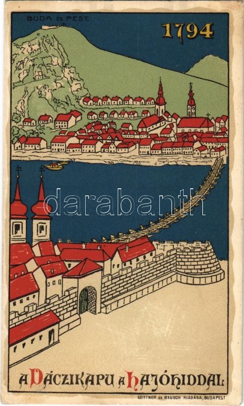 Budapest anno 1794. A Váczikapu a Hajóhíddal. Geittner és Rausch kiadá... https://www.darabanth.com/de/33-Gross-Auktion/33.1/Ansichtskarten/Ungarn~13900/Budapest-anno-1794-A-Vaczikapu-a-Hajohiddal-Geittner-es-Rausch-kiadasa-Art-Nouveau-litho~II2132494